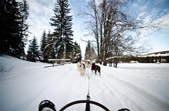 Czas trwania programu: około 2 h (20 min na zapoznanie z psami i instruktaż, ok. 1 godz. przejażdżka + obiad lub obiadokolacja).